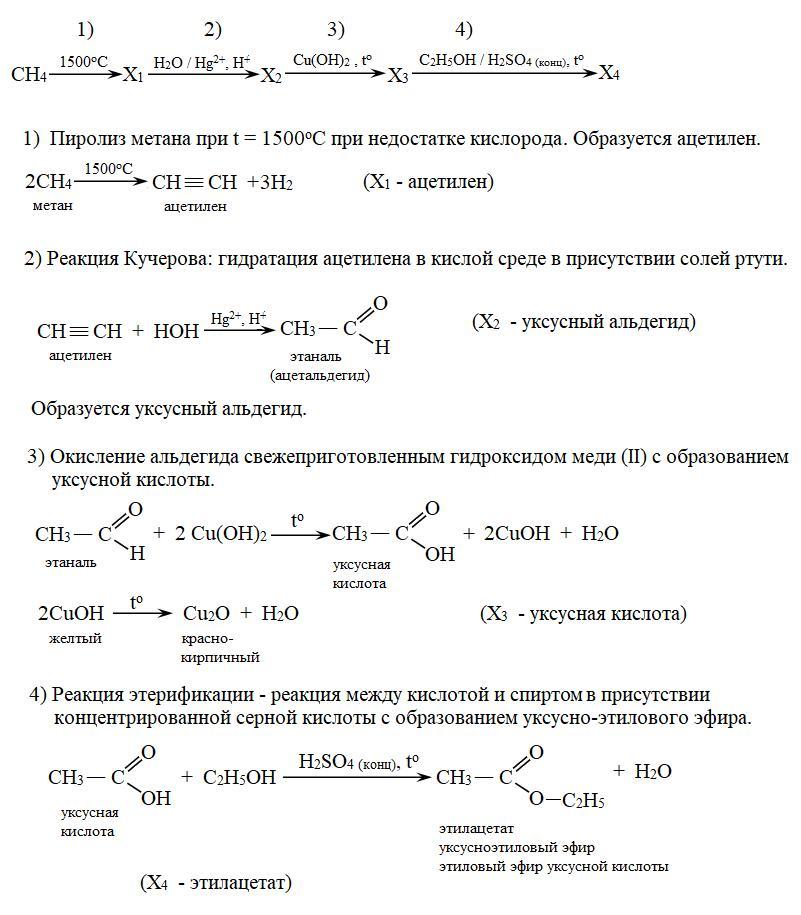 X₁ - ацетилен, X₂ - ацетальдегид, X₃ - уксусная кислота, X₄ - этиловый эфир уксусной кислоты.