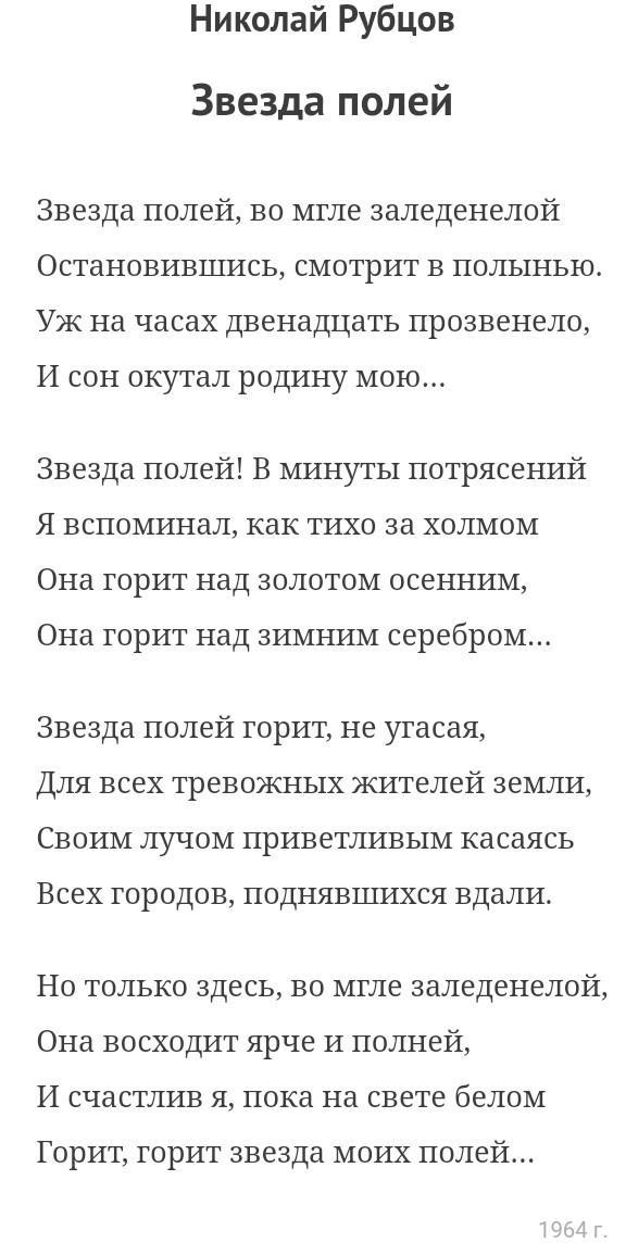 анализ стихотворения Николая Рубцова “Звезда полей” по плану: