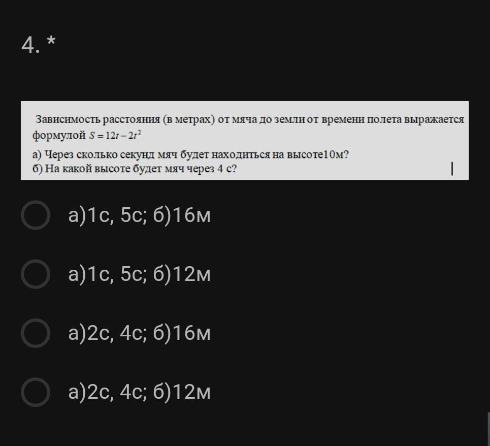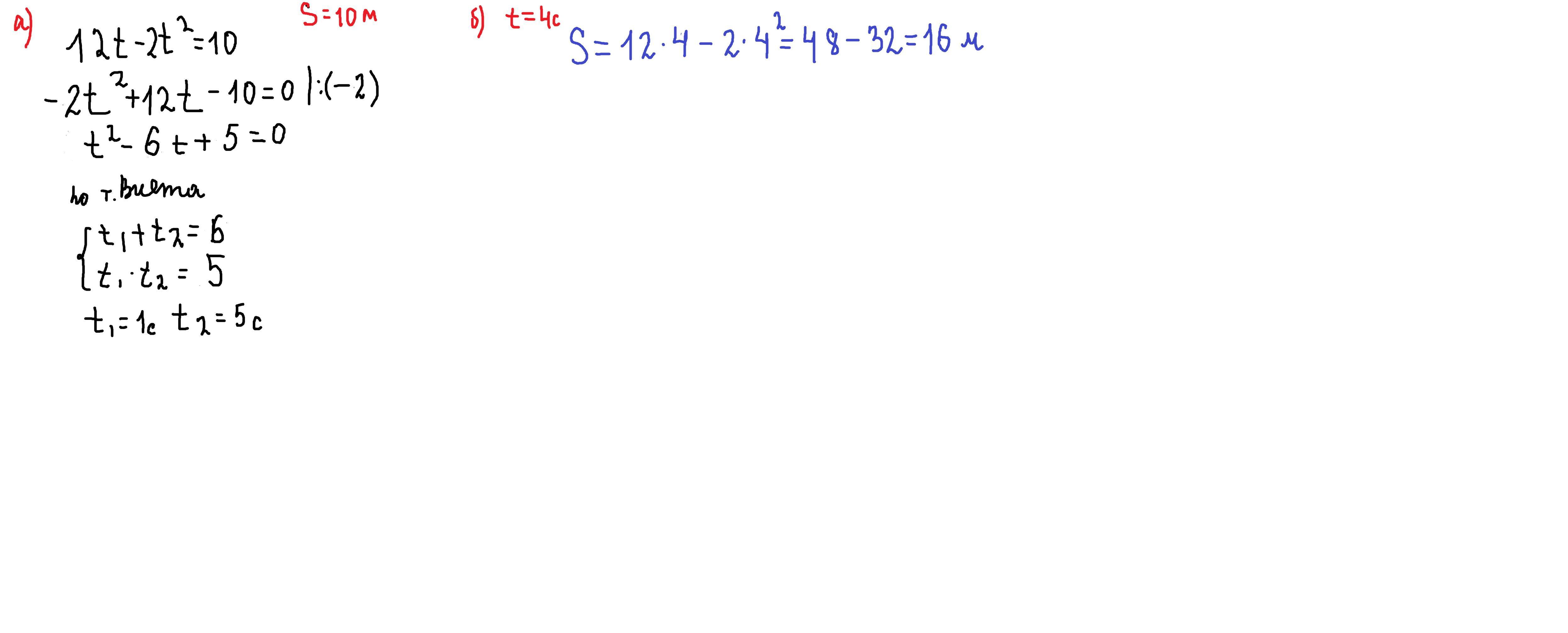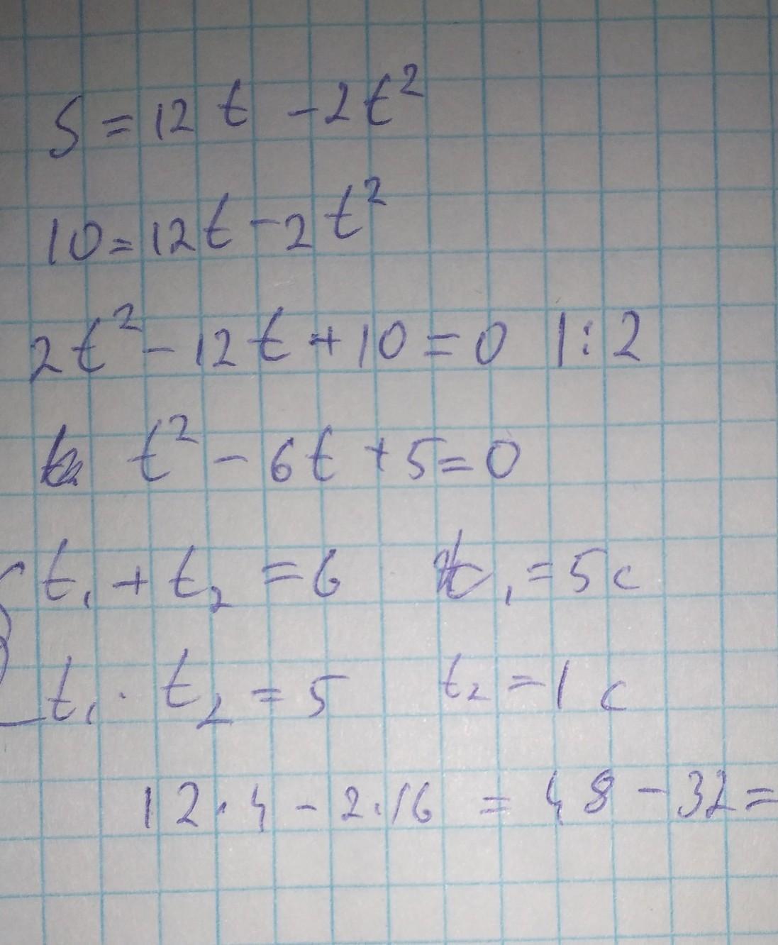 в формулу вместо S подставим 10 и решим квадратное уравнение,найдем 1с и 5 с