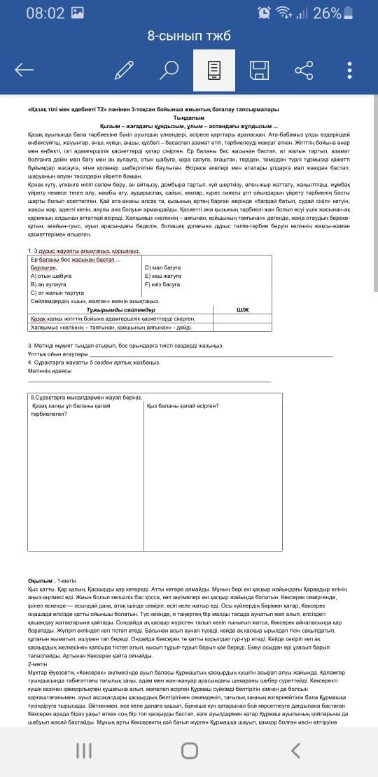 4. Мәтіннің идеясы қазақтардағы бала мен қыз тәрбиесі.