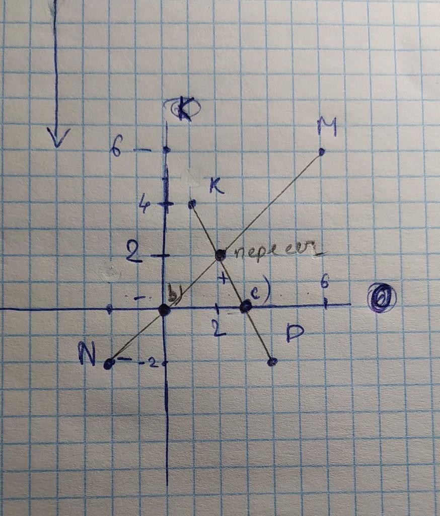 с) Найдите координаты точки пересечения прямой KP с осью ординат.