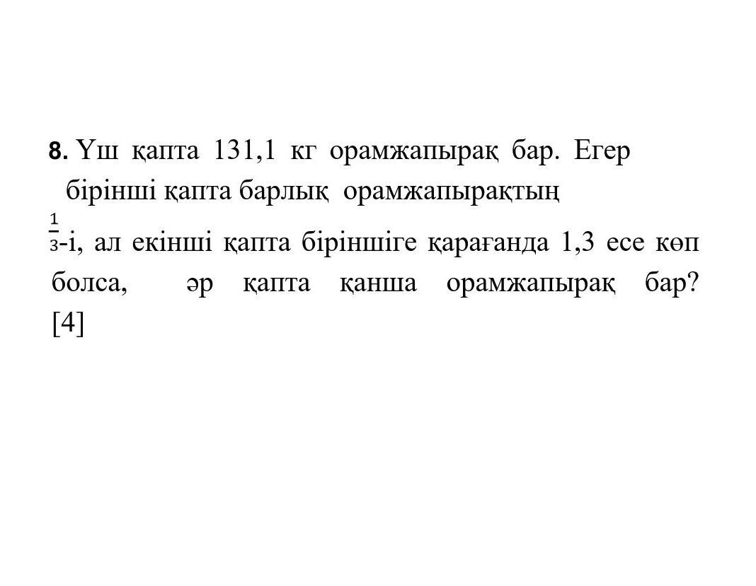 131,1-43,7-56,81=30,59кг 3ші қапта