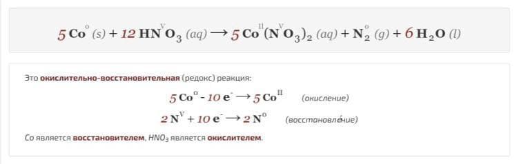 1. Co + HNO3(разб.) = Co(NO3)2 + N2 + H2O