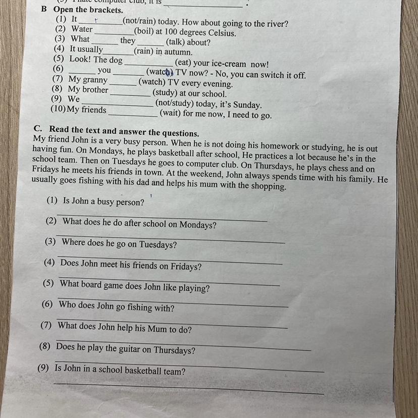 7) John help his mum with the shopping
