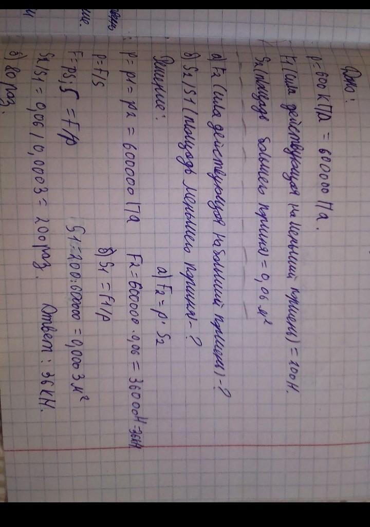 a) F2=p*S2=6*10^5*0.06=36000 H