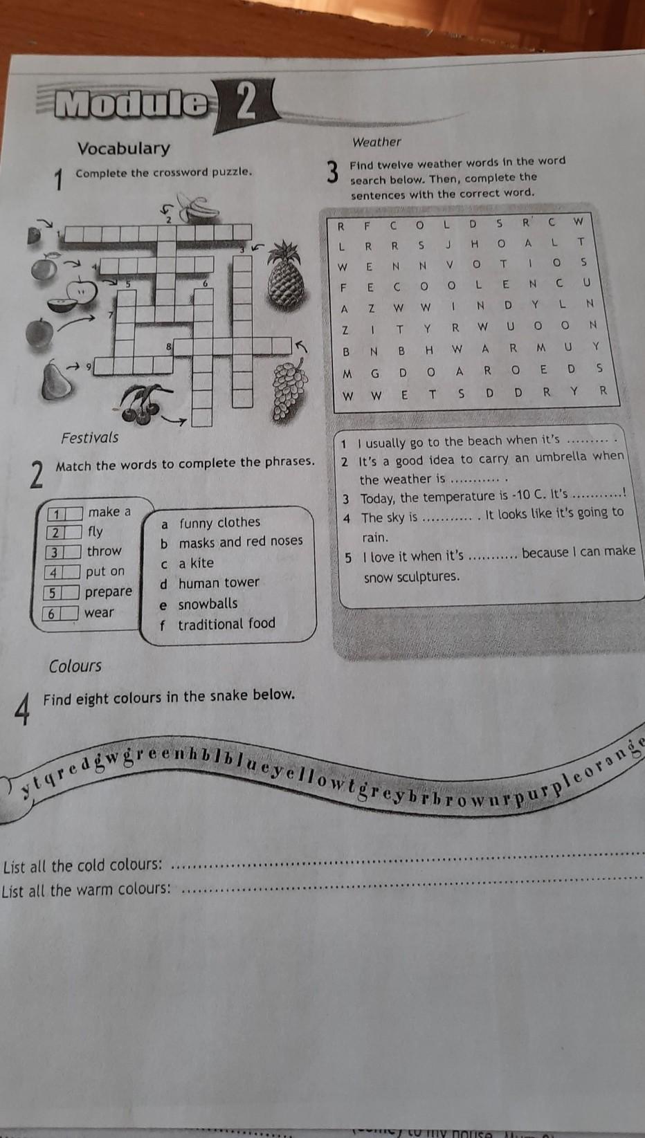 1 warm 2 rain 3 cold 4 cloudy 5 snowy