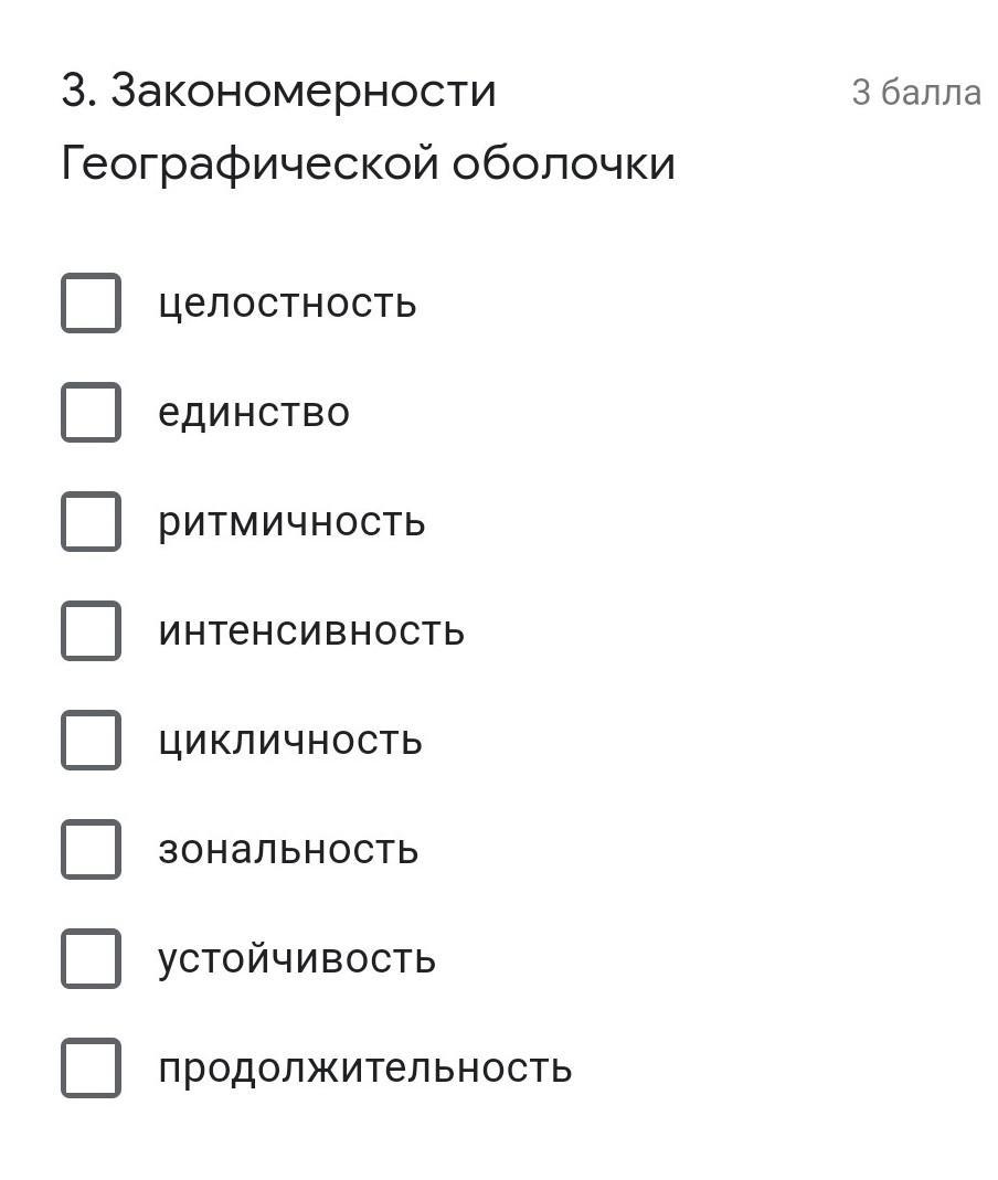 Географической оболочке присущи следующие общие закономерности ее развития: целостность, ритмичность, зональность.