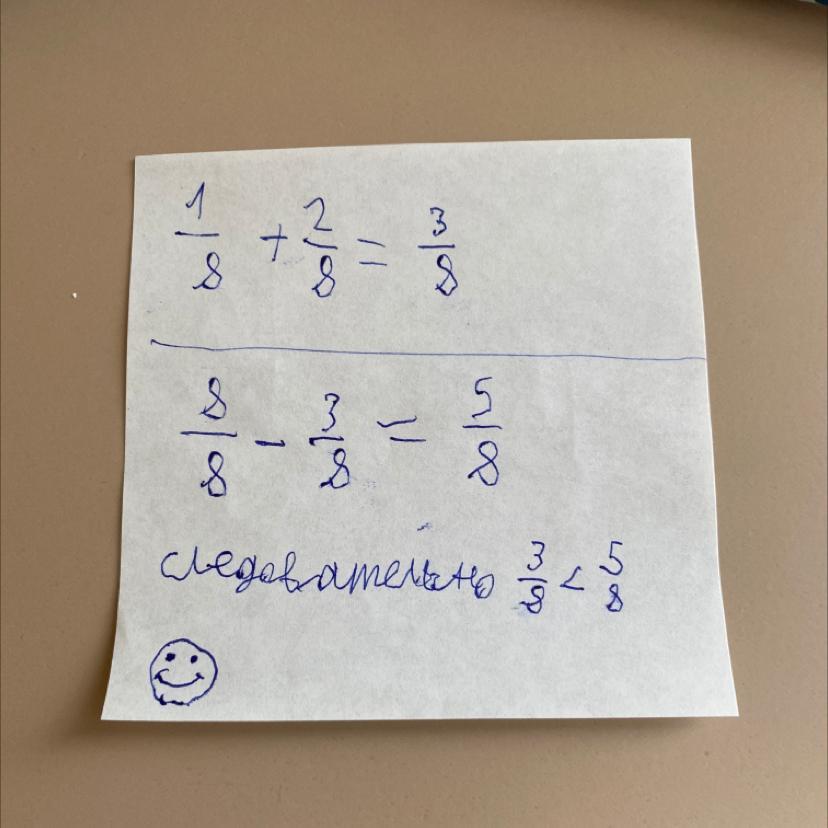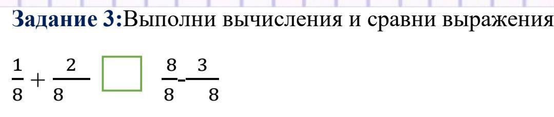 ответ 1/8+2/8=3/8 8/8-3/8=5/8