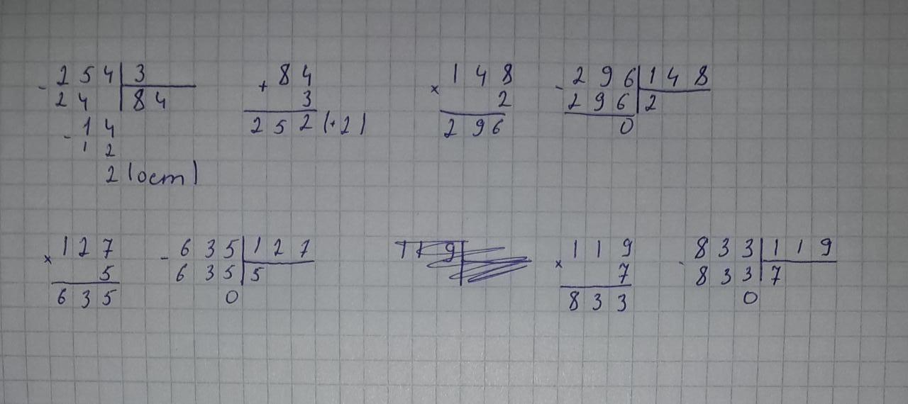 Как же научится деление с остатком или умножение с остатком, тоесть ты должен знать таблицу умножения нужно сначала научится обычному деление без остатка например 252:3=84 как я везла число 84 я взяла 25 и поделила на 3 вот так: 25:3= мы берём по 8 потому что мы не можем поделить 25 на 3 значит подходит 8 потому что если 8•3=24 это подходящие число для 25 значит берём по 8, умножаем у нас остаток 1 сносим 2 у нас получается 12 берём по 4 у нас получается ответ 84 без остатка и хочу напомнить что если ты делишь нужно проверку писать в низ обязательно