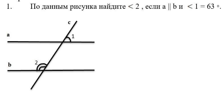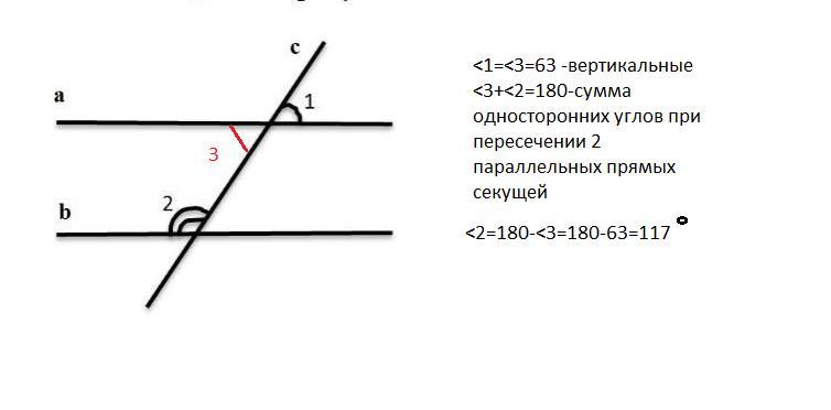 По данным рисунка найдите <2 , если a || b и <1 -63°