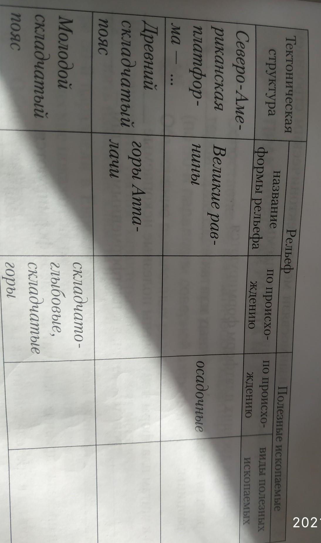 1. Заполните пропуски в таблице «Тектонические структуры, форма