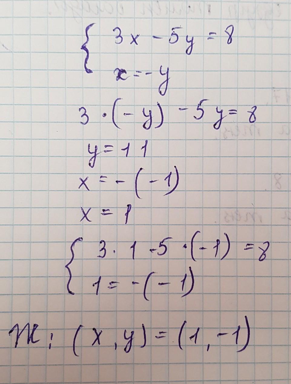 -3y - 5y =8 -8y = 8 y = -1