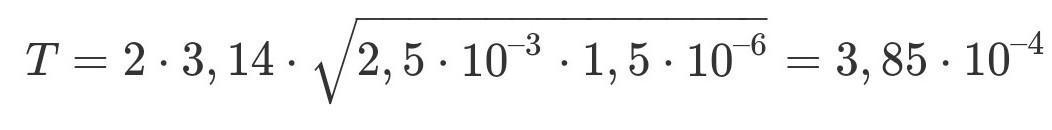 L=2,5 мГн, C=1,5 мкФ, T−?