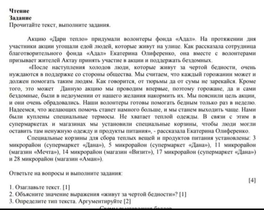 3) Тип текста-Рассуждение. В тексте автор рассуждает на тему Акции "дари тепло" и сути этой акции.