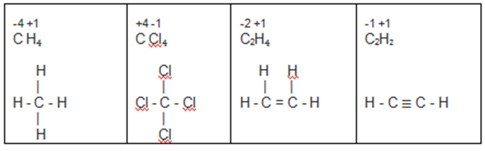 Определите степень окисления углерода и запишите структурныеформулы следующих веществ, зная, что углерод в органических соединениях всегда четырёхвалетнтен: метана СН4,тетрахлорметана ССl4, этана С2Н4, ацетилена С2Н2.
