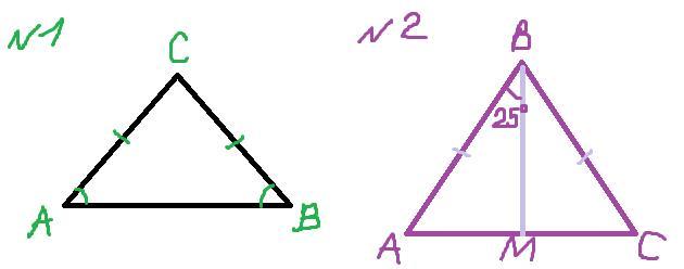 1. если углы A и B равны, то ΔABC - равнобедренный => AС=ВС