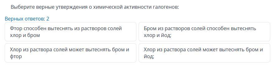 фтор способен вытеснять из растворов солей хлор и бром