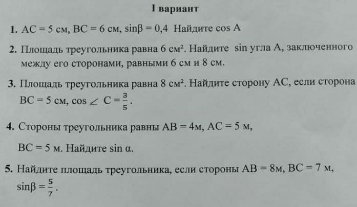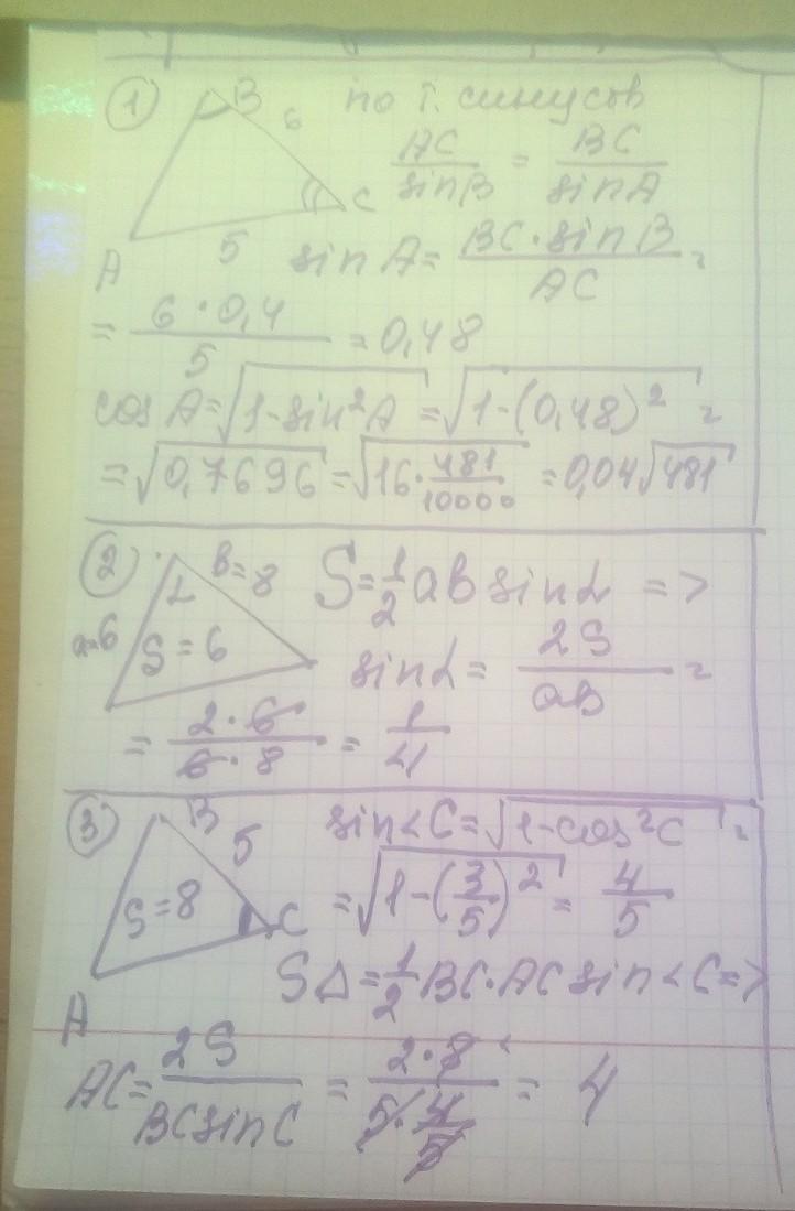 1. АС = 5 см, ВС = 6 см, sin[8 = 0,4 Найдите cos