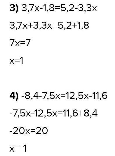 2) 16,4x – 4,8 = 6,4x + 5,2; 4) -8,4 - 7,5x = 12,5x + 11,6.