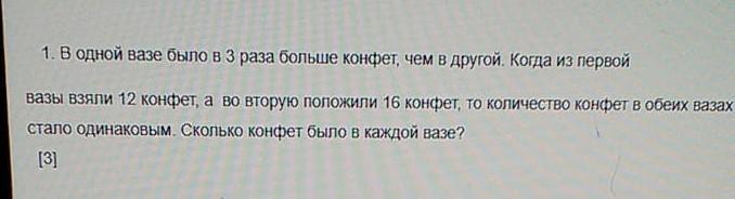 У нас есть две вазы, в одной вазе больше конфет в три раза.