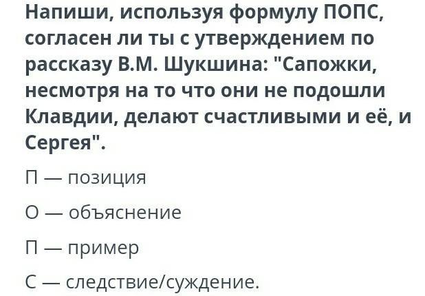 П- это произведение в которой наглядно показано как радуют сапоги и Сергея и Клавдию но они ей не подходят