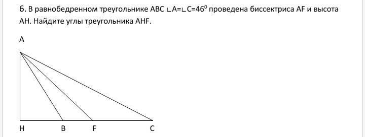 ответ в треугольнике НАF Н=90, А=23, F=67