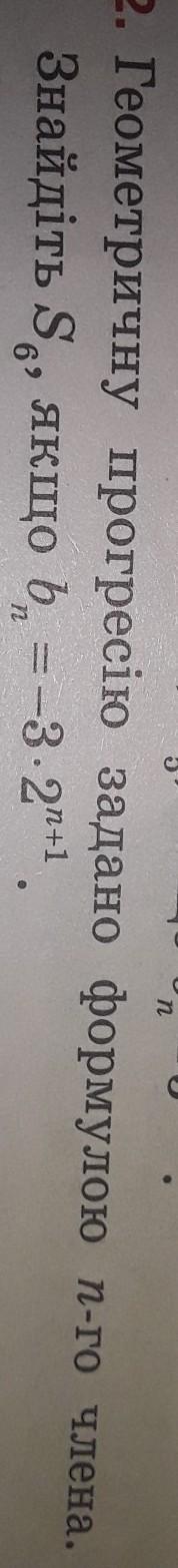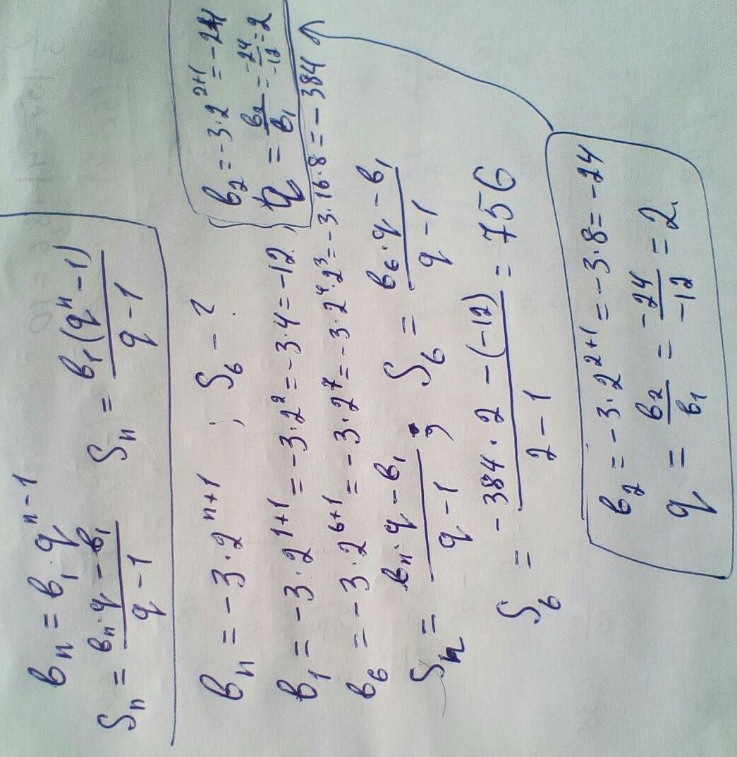 геометричну прогресію задано формулою n-го члена. Знайдіть S6 якщо bn=-3*2n+1