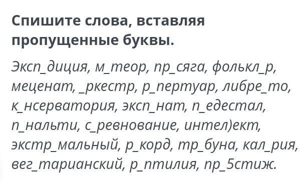 спиши слова, вставляя пропущенный буквы Эксп_диция,