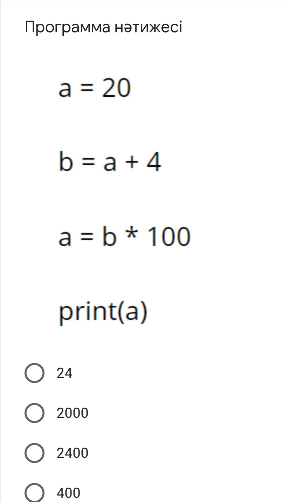 c = b × 100 = 24 × 100 = 2400