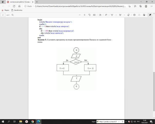 Задание 5. Составить программу на языке программирования Паскаль по заданной блок схеме.