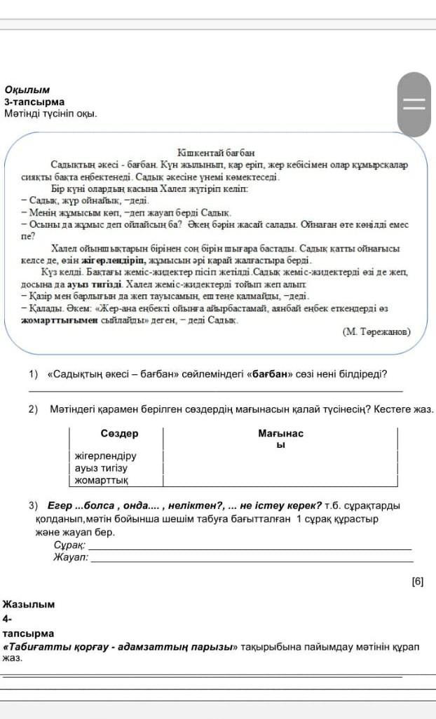 Жауап: Мен Садықтың орнында болсам ойынды қойып әке ме көмектесер едім.