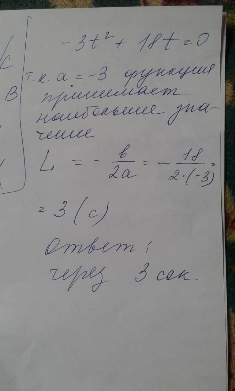 высота полета мяча над землей выражается этой формулой: h(t)-3t²+18t.