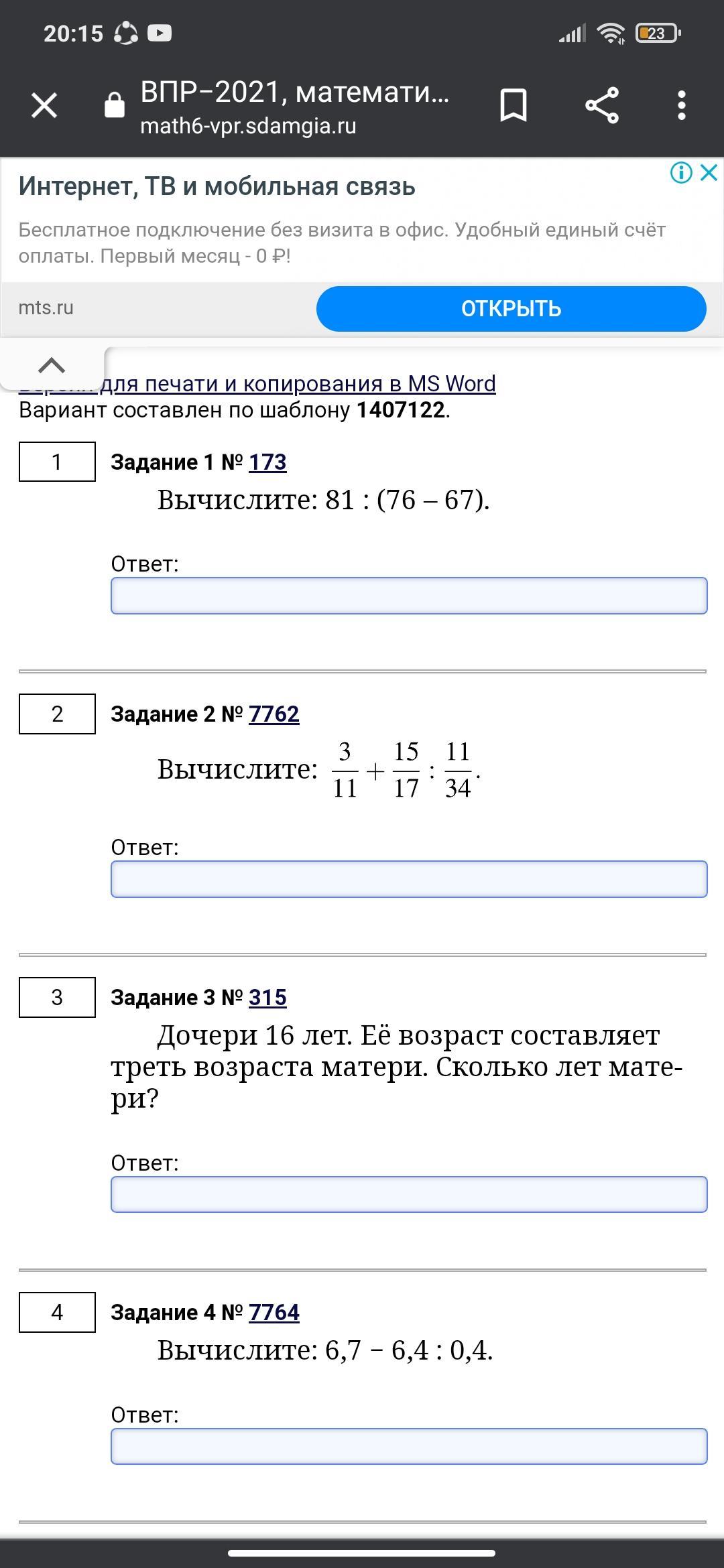 Ответ: