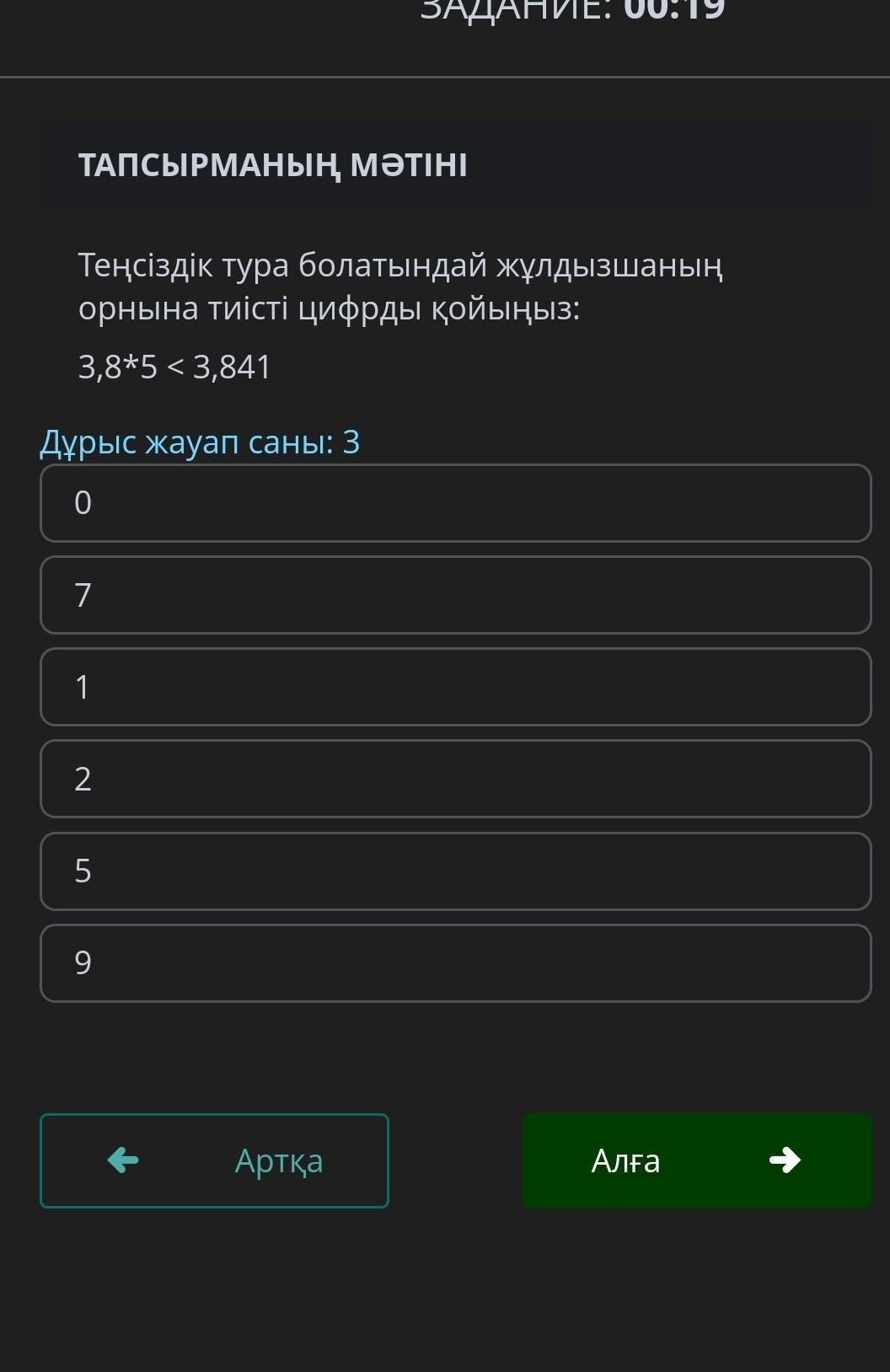 Тенсыздык тура болатындай жулдызшаннын орнына тиысты цифрды койыныз 3,8*5<3,841