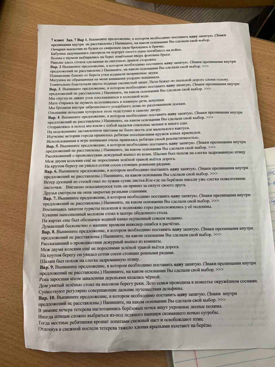 Вы пишите одно предложение из каждого варианта , в котором необходимо поставить запятые, на какой основании вы это сделали.