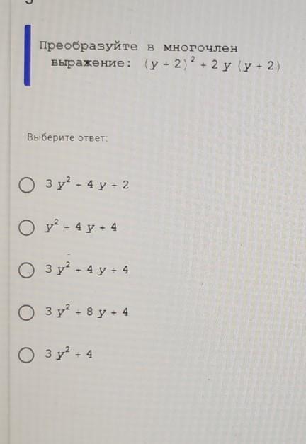 (у + 2)² + 2у × (у + 2) = у² + 4у + 4 + 2у² + 4у = 3у² + 8у + 4