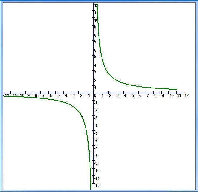 Графиком функции является гипербола, так как коэффициент k=5, k>0, то график расположен в 1 и 3 четвертях.