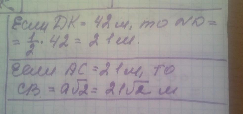 Ответ: DK=2a=42, значит 2а=42 =>а= 21, ND=a= 21