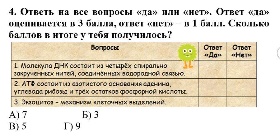 Ответь на все вопросы «да» или «нет». Ответ «да» оценивается в 3 балла, ответ «нет» – в 1 балл. Сколько баллов в итоге у тебя получилось?