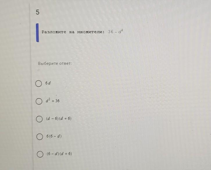 последнее, т.к раскроем скобки и получим: 6д+36-д^2-6д= 36-д^2