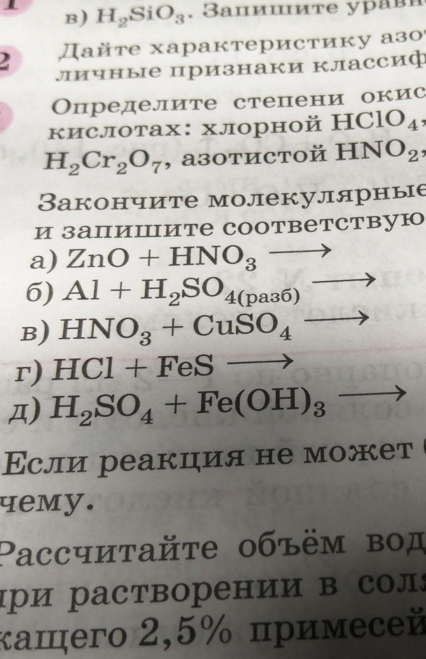 Закончите молекулярные уравнения возможных реакций и запишите соответствующие им ионные уравнения.