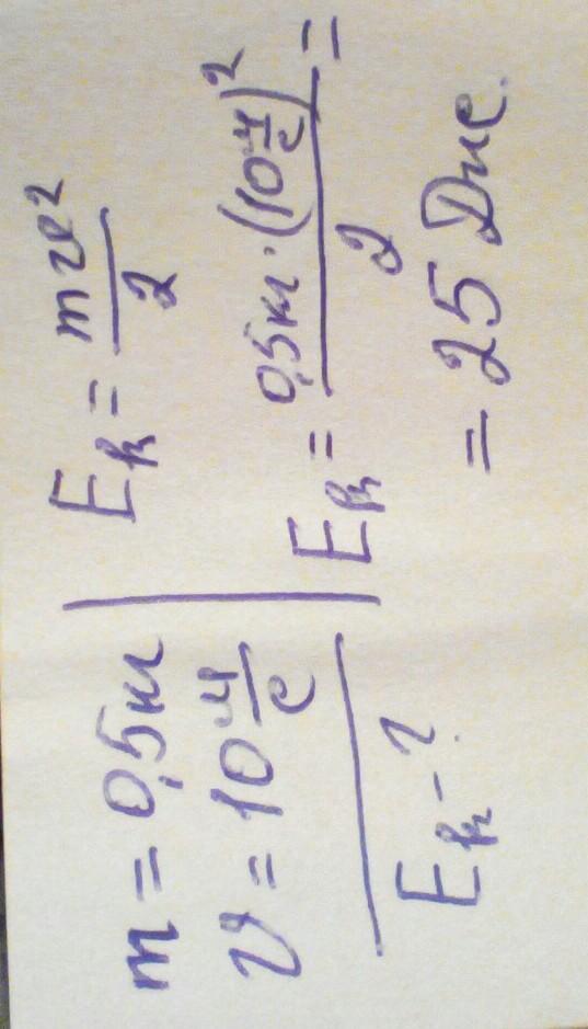 Определите кинетическую энергию шара массой 0,5 кг, катящегося по траве со скоростью 10 м/с.