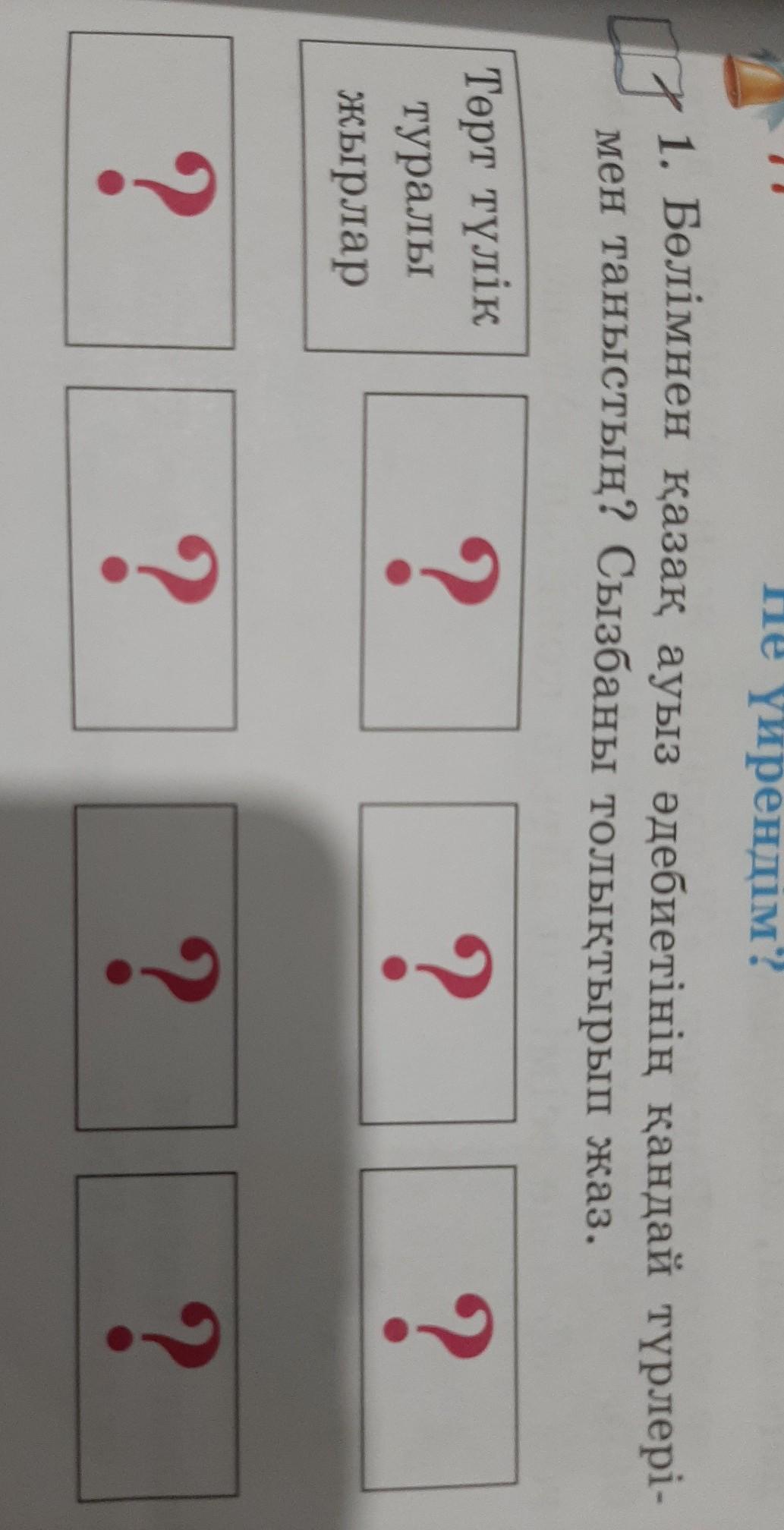 бөлімнен қазақ ауыз әдебиетінің қандай түрлерімен таныстың ? Сызбаны толықтырып жаз