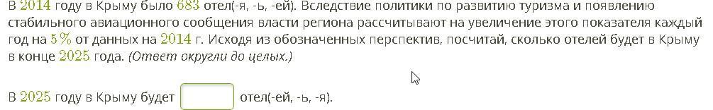 Начиная с 2014 мы начали прибовлять по 5 % за каждый год до 2025(включительно) и за это го получилось что начиная с 2014 и заканчивая в 2025 в Крыму будет стоять 1168 отэлей