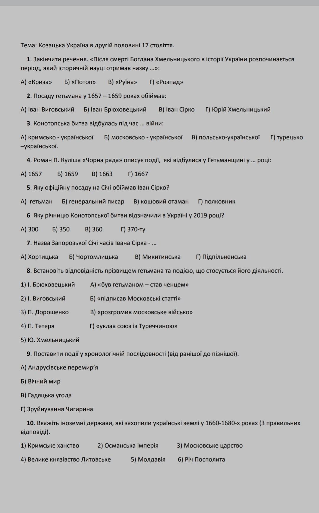 Ответ: 1 - в, 2 - а, 3 - в, 4 - в, 5 - в, 6 - б, 7 - а, 8 - 1б,2в,3а,5г, 9 -вагб, 10 -146
