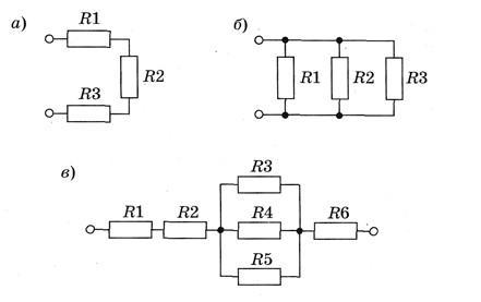 б) параллельное соединение => Rобщ = R / n = 4 Ом / 3 ≈ 1.3 Ом