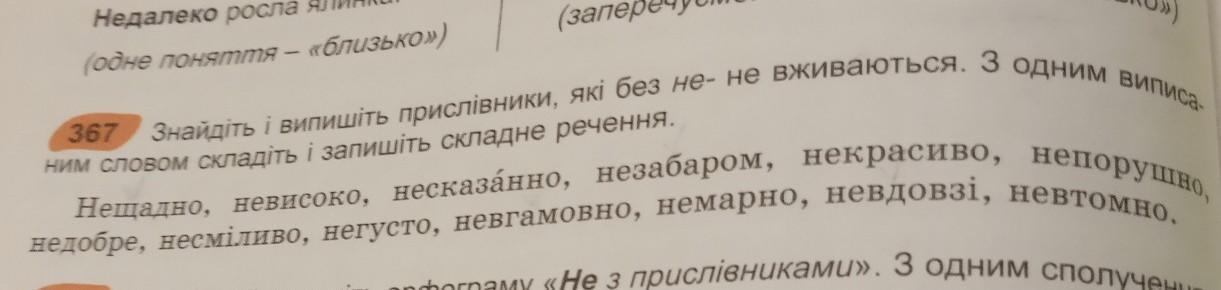 Знайдіть і випишіть прислівники, які без -не не вживаються.З одним виписаним словом складіть складне речення
