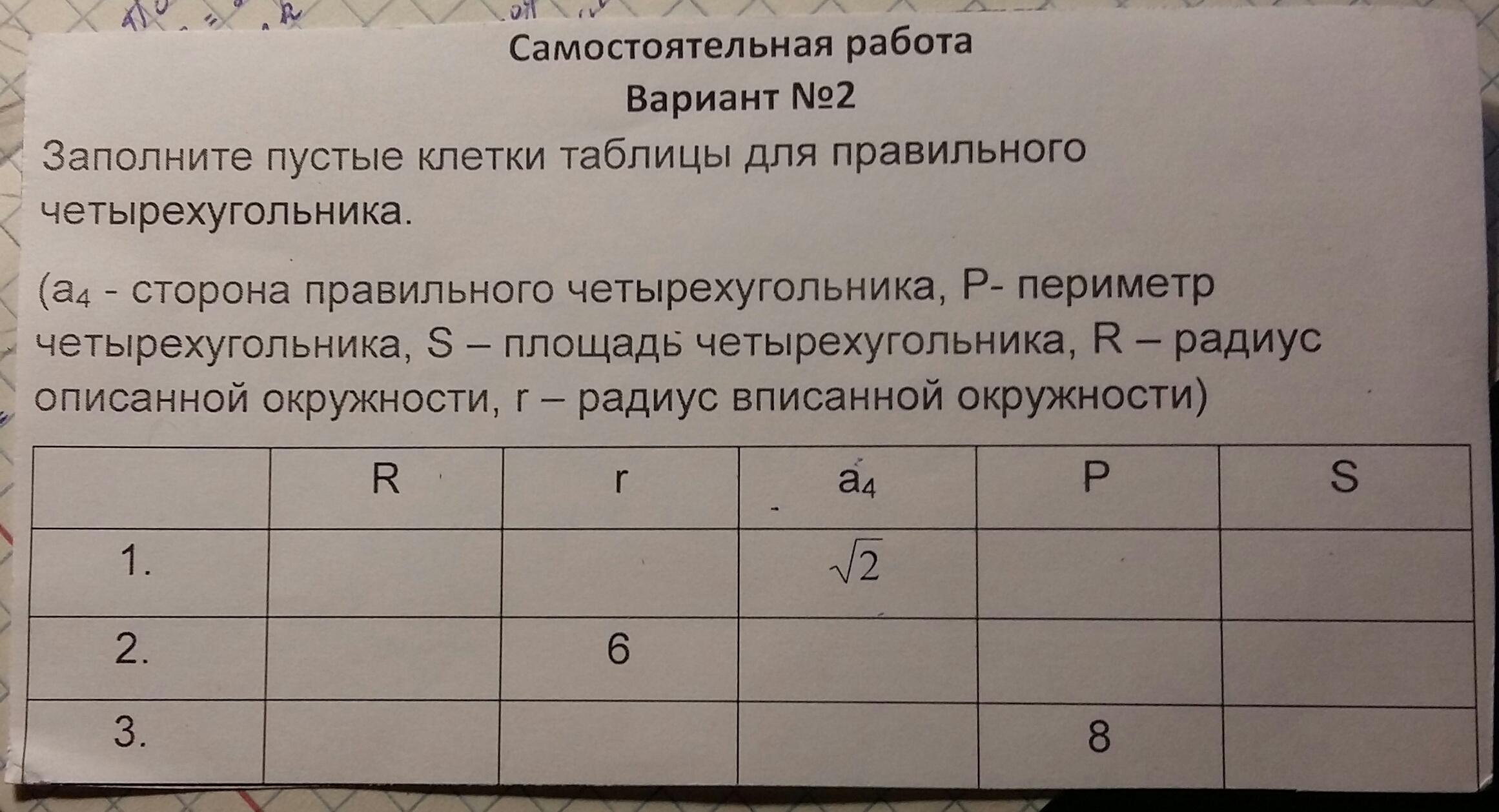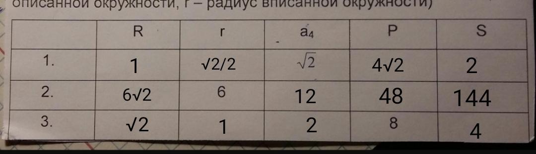 a₄= 2r • tg(45) , √2=2r , r=0,5√2