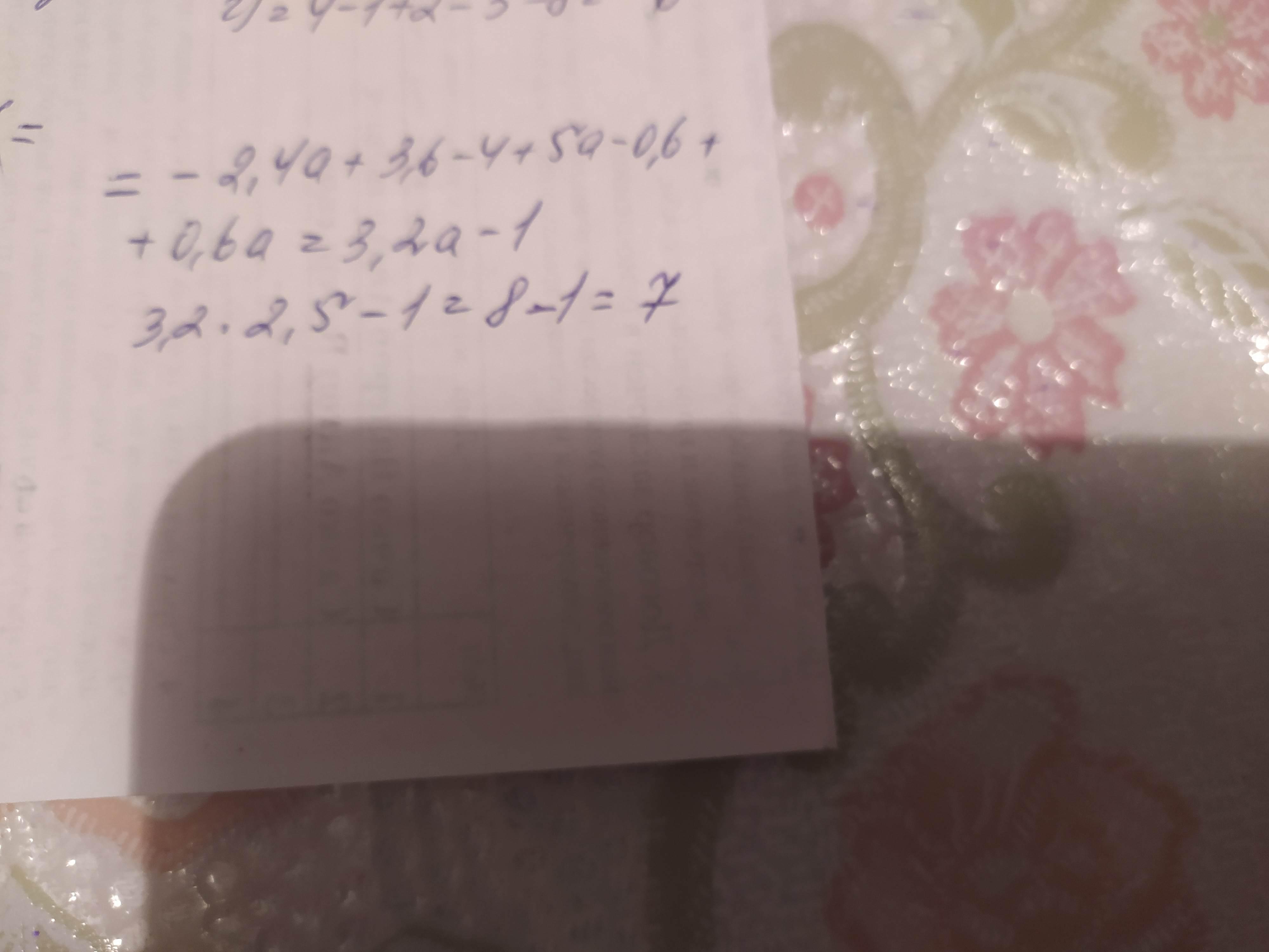 спростіть вираз і знайдіть його значення -1,2(2a - 3)- (4-5a) - 0,6(1 - a) при а =2,5