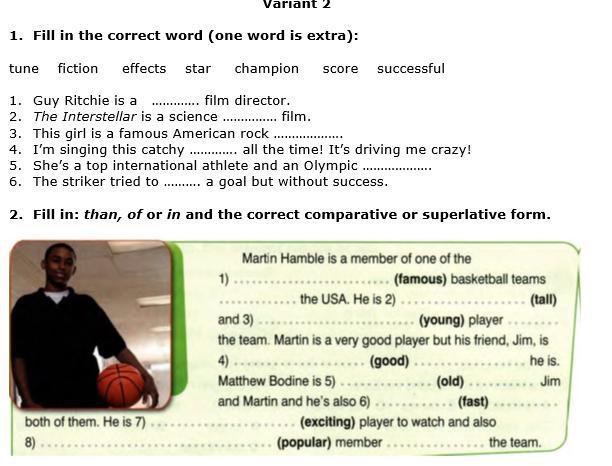 1)most famous/of 2)taller 3)younger/in 4)better/than 5)older/than 6)faster/than 7)most exciting nest popular in the team